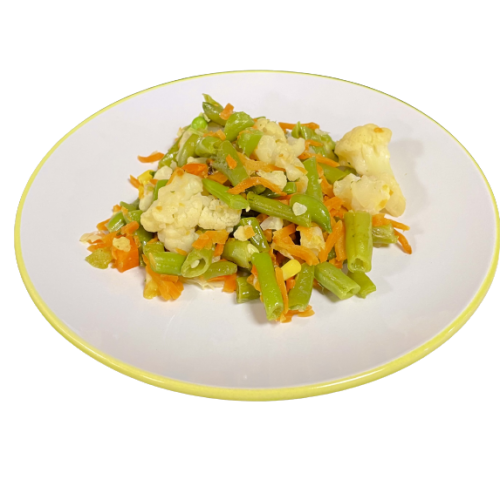 капуста цветная, брокколи, фасоль стручковая, морковь, специи, масло, чеснок