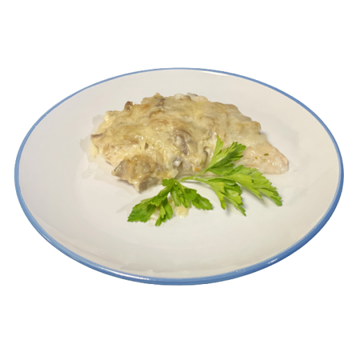 филе куриное, шампиньоны, лук, специи, сыр, сметана, майонез.