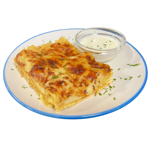 свинина/говядина, макароны Лазанья, сыр, соус молочный, соус Болоньезе, сметана