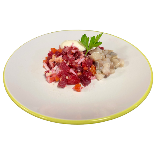 свекла, филе сельди, яйцо, морковь, лук, майонез, зелень