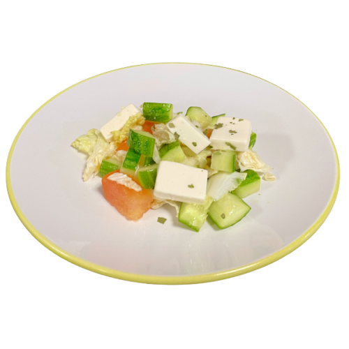 салат зеленый, огурец свежий, томат свежий, сыр твердый, масло растительное, соль