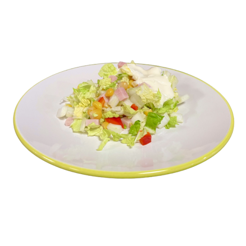 салат зеленый, ветчина, перец свежий, кукуруза консервированная, майонез